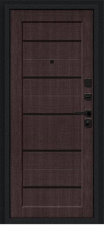 Надежная входная Дверь Браво Борн/SBlack Букле черное/Wenge Melinga премиум класса по цене 30 935 руб. Большая толщина стали защитит от проникновения в ваш дом, квартиру или коттедж. Используется очень качественная фурнитура: замки, цилиндры, ручки, защелки. Покрытие и отделка двери изготовлено под внимательным контролем производителя. Дверь имеет долгий срок службы и гарантию.