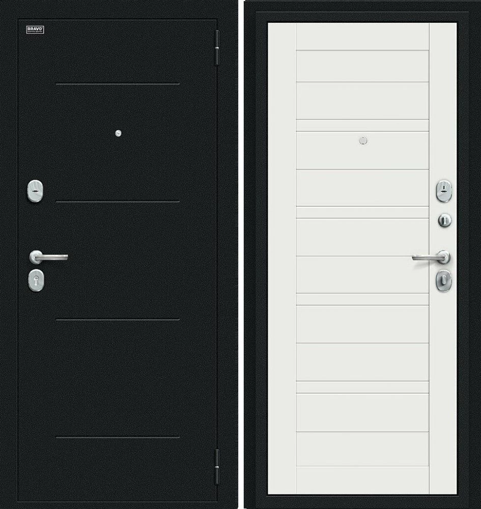 Надежная входная Дверь Браво Сити Kale Букле черное/Off-white премиум класса по цене 35 905 руб. Большая толщина стали защитит от проникновения в ваш дом, квартиру или коттедж. Используется очень качественная фурнитура: замки, цилиндры, ручки, защелки. Покрытие и отделка двери изготовлено под внимательным контролем производителя. Дверь имеет долгий срок службы и гарантию.