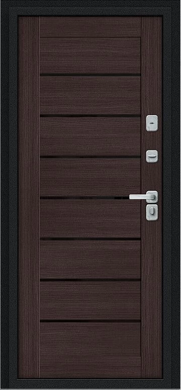 Дизайнерская входная Дверь Браво Thermo Техно Д2/BChrome Букле черное/Wenge Melinga класса Люкс с несколькими листами стали, звукоизоляцией и теплоизоляцией. Утепленный короб и полотно защитят от сквозняков и шумов. Модель не только надежная, комфортная, защищенная и высочайшего качества, но и очень красивая! Будет отлично сочетаться с интерьером дома, квартиры или офиса. Сейчас действует выгодное предложение по цене: 56 085 руб.