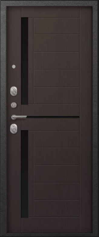 Надежная входная Дверь A-01 черный сатин - лиственница тёмная премиум класса по цене 30 585 руб. Большая толщина стали защитит от проникновения в ваш дом, квартиру или коттедж. Используется очень качественная фурнитура: замки, цилиндры, ручки, защелки. Покрытие и отделка двери изготовлено под внимательным контролем производителя. Дверь имеет долгий срок службы и гарантию.